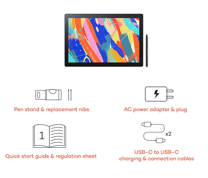 Dây cáp giúp kết nối bảng vẽ màn hình với máy tính, đồng thời truyền tải tín hiệu hình ảnh, dữ liệu bút và nguồn điện. Với Cintiq 16, cáp USB-C đi kèm có thể thực hiện cả 3 chức năng này – nếu máy tính của bạn hỗ trợ USB-C có DisplayPort Alt Mode hoặc Thunderbolt 3/4.
