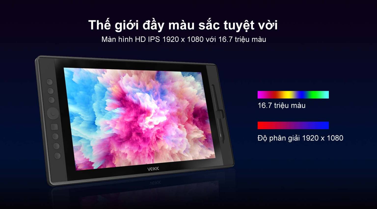 Bảng vẽ màn hình Veikk VK1560 mang đến thế giới đầy màu sắc tuyệt vời