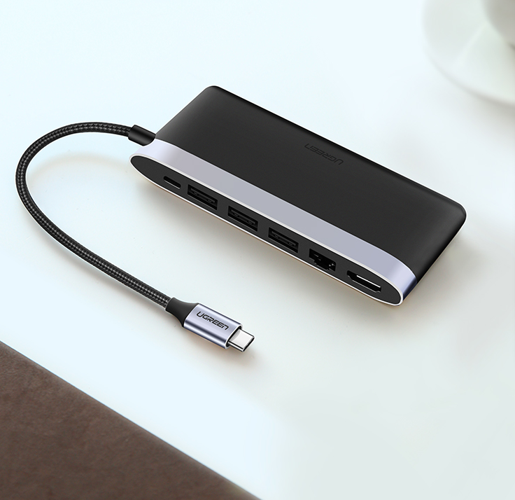 Bộ chuyển đa năng Type-C Ugreen to HDMI+ Lan+ USB 3.0+ SD/TF+ sạc Type-C 50989