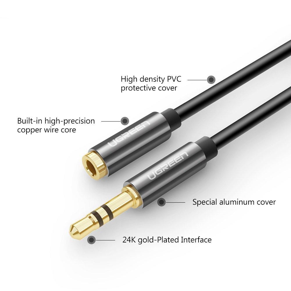 - Cáp Audio 3.5mm nối dài chính hãng Ugreen 10595 giúp mở rộng bất kỳ jack 3.5mm trợ để , mang đến cho bạn yêu thích âm nhạc bằng cách kết nối thiết bị di động của bạn, giống như iPhone, iPod hoặc bất kỳ máy nghe nhạc MP3, đến một loa âm thanh trên xe hoặc loa system.Chất lượng hoàn hảo cho bạn tận hưởng âm thanh cuộc sống tuyệt vời.