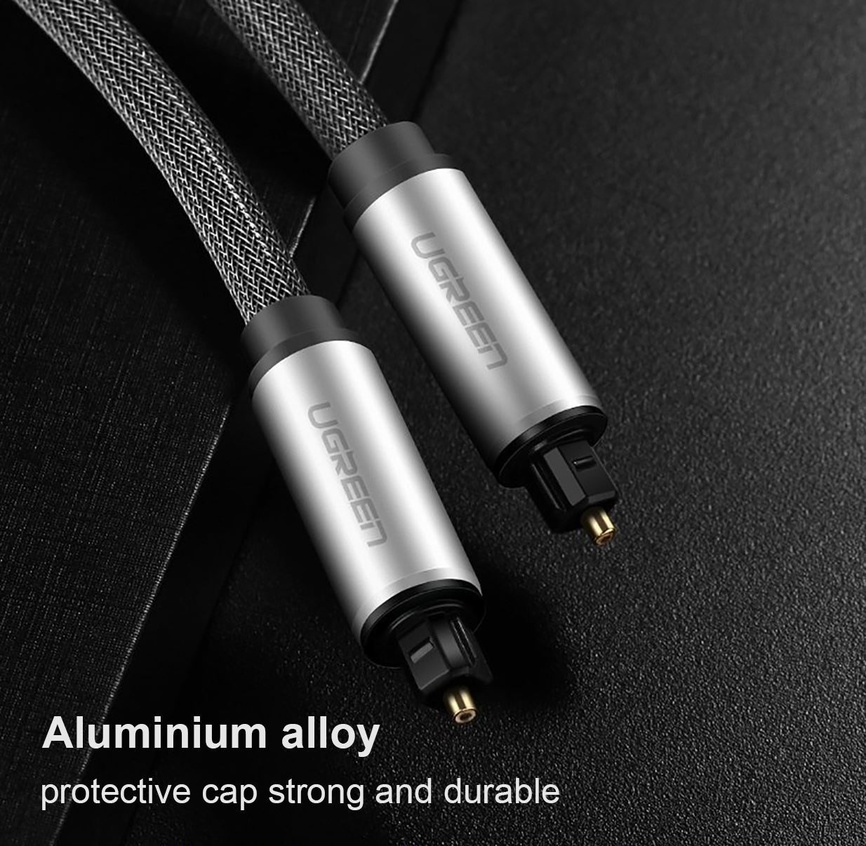 - Dây cáp quang Optical Ugreen dạng lưới, đầu cáp quang được bảo vệ bằng vỏ nhôm chắc chắn.