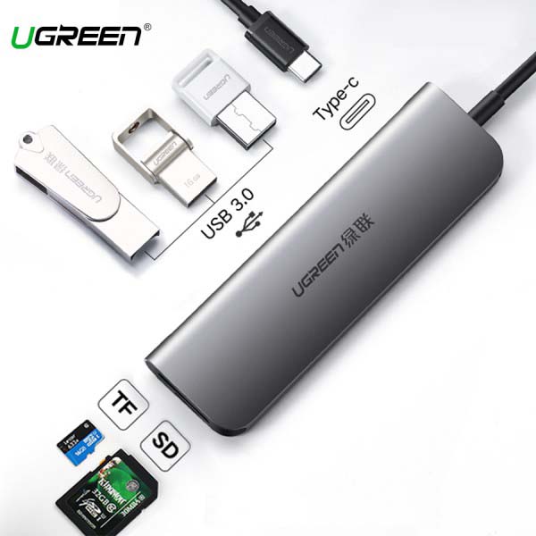 Cáp chuyển Ugreen Type C to Hub USB 3.0 + Khe đọc thẻ nhớ SD/TF 50598