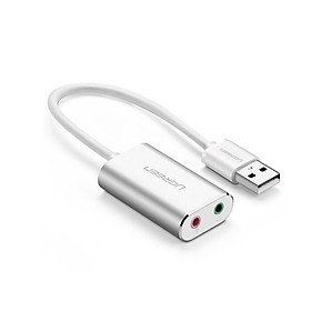 - Cáp chuyển USB 2.0 to 3.5mm Ugreen 30801 hỗ trợ hai jack 3.5mm âm, một đầu là cổng loa tai nghe cổng còn lại là cổng cắm mic
