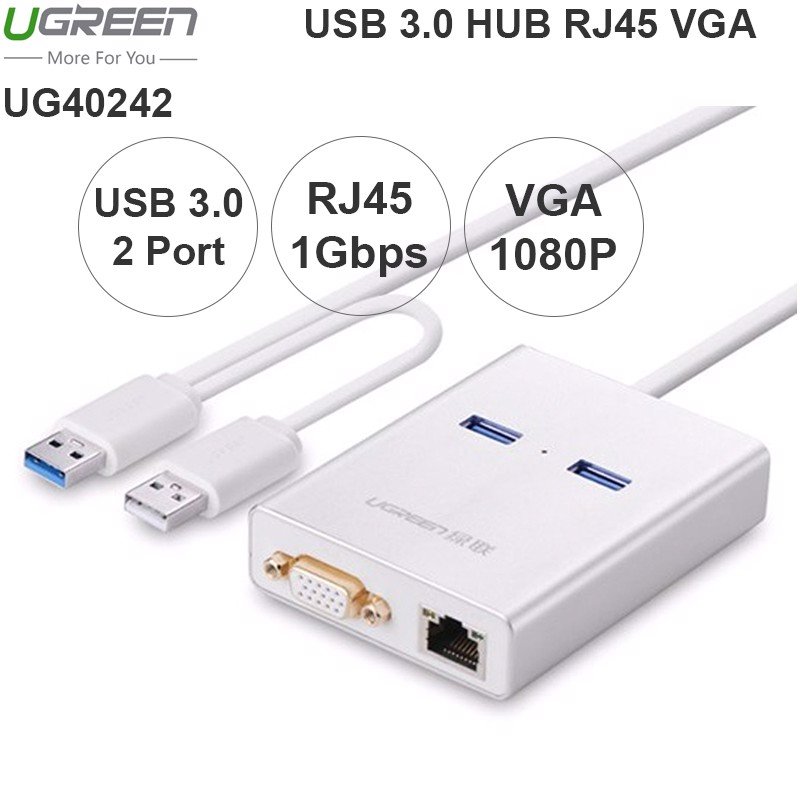 - Cáp chuyển USB to VGA, USB 3.0, Lan Ugreen 40242 có thể không chỉ có thêm một / 100 / 1000Mbps Gigabit giao diện mạng ethernet 10 mà còn cho phép bạn kết nối nhiều thiết bị, chẳng hạn như máy ảnh kỹ thuật số, người hâm mộ máy tính, ổ đĩa flash vào máy tính của bạn thông qua một USB đơn giao diện.