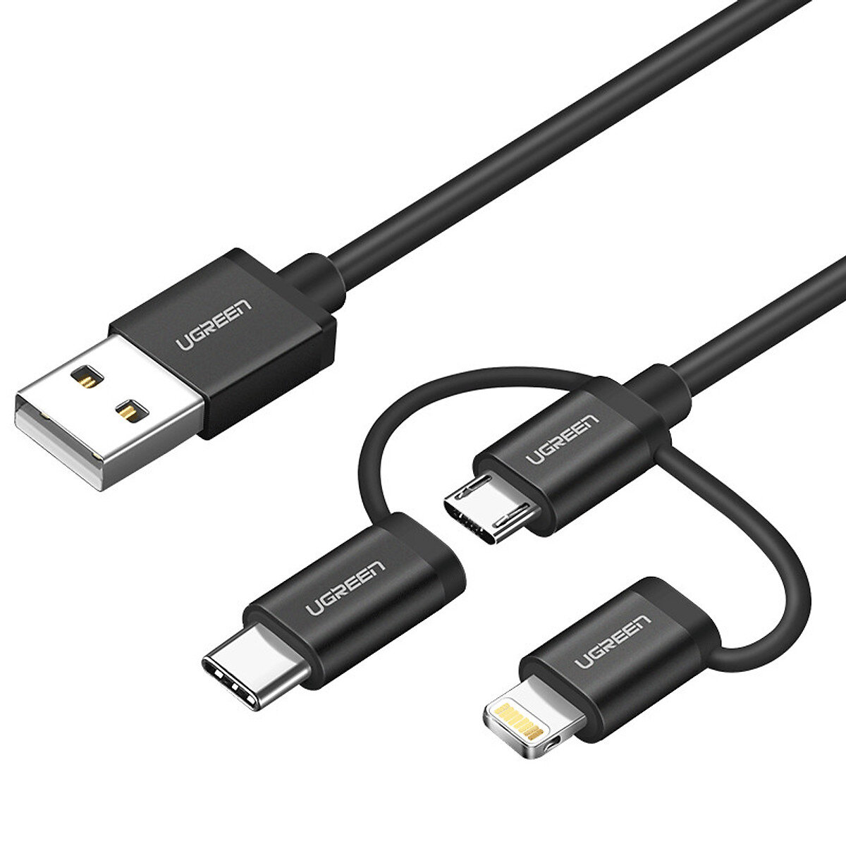 Cáp sạc USB Ugreen Type-C+ Lightning + Micro USB 3 trong 1 dài 1m 50205