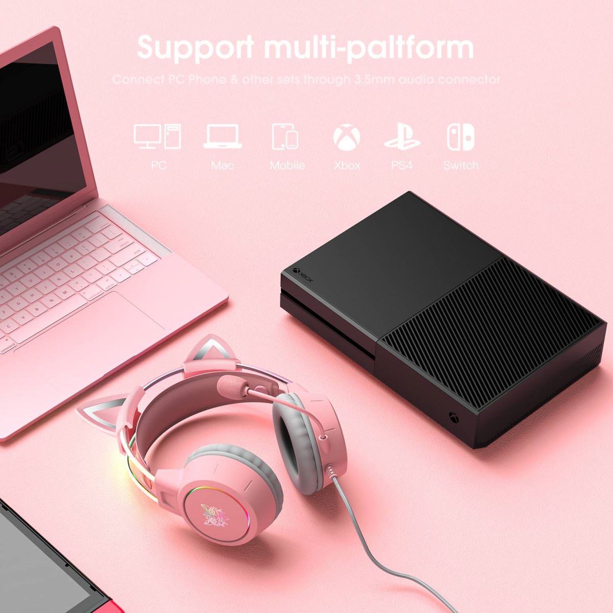 Tai nghe chơi game ONIKUMA X15 PRO có tai mèo kết nối Điện thoại PC và các bộ khác thông qua đầu nối âm thanh 3,5 mm.