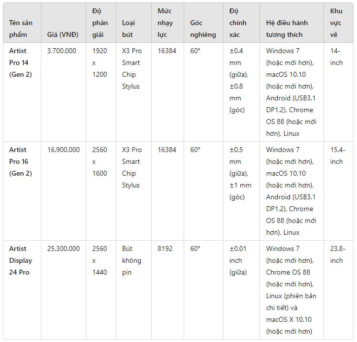 So Sánh Tính Năng Của 3 Màn Hình Vẽ Xuất Sắc