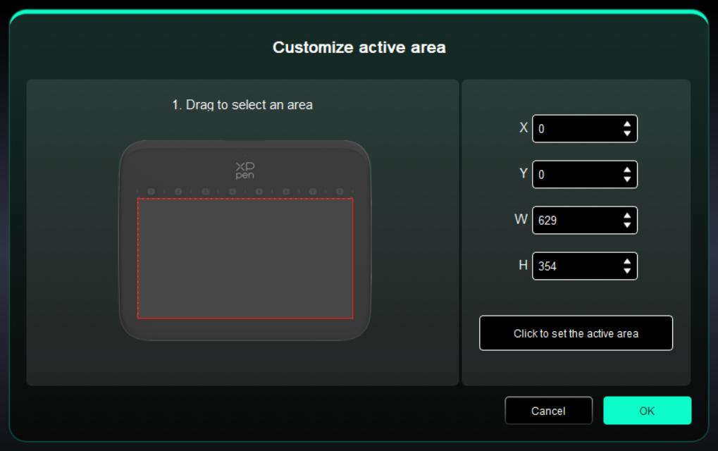 - Nhấp để thiết lập khu vực hoạt động: Sử dụng bút cảm ứng để nhấp vào vị trí góc trên bên trái và vị trí góc dưới bên phải trên thiết bị của bạn.