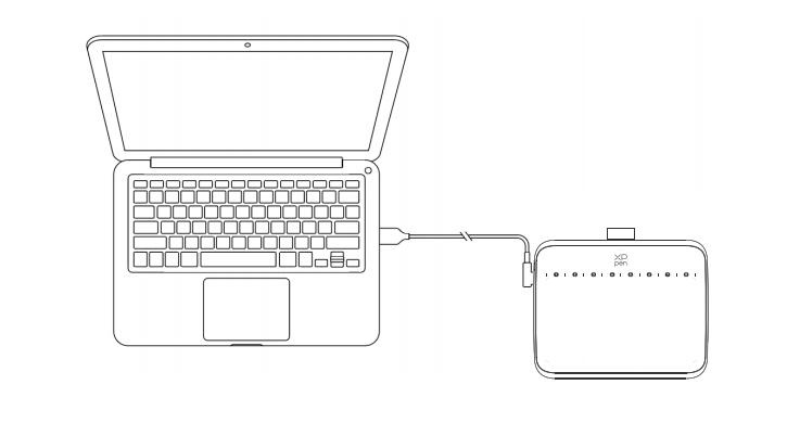 Vui lòng kết nối cáp USB-C sang USB-A vào cổng USB trên máy tính và cổng USB-C trên bảng vẽ tương ứng.