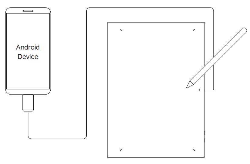 Vui lòng kết nối cáp USB-C với Bộ Chuyển Đổi OTG vào thiết bị Android và bảng vẽ tương ứng.